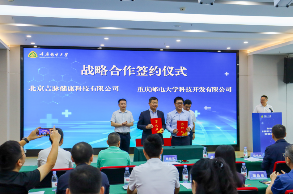据悉,发布会现场,北京吉脉健康科技有限公司还与重庆邮电大学科技开发公司进行签约,正式落地重庆邮电大学科技园,加快校地企深度融合,实现“企业出题、师生答题、市场检验”闭环运行,进一步助推重庆邮电大学江南分院研究生人才培养模式改革。